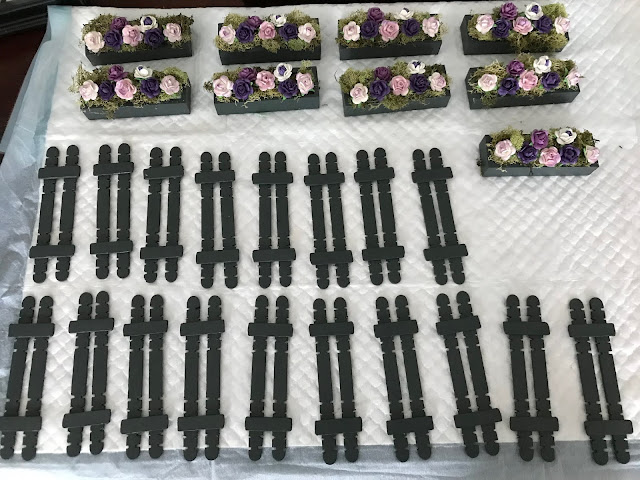 I've also had it in the back of my mind to make some flowering window boxes, which you can see here (along with the underside of the shutters as they're in the process of drying):